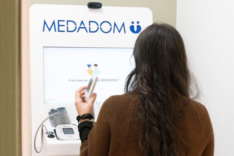 Une cabine de téléconsultation Médadom vous permettant de consulter un médecin à distance, facilement et en toute confidentialité.